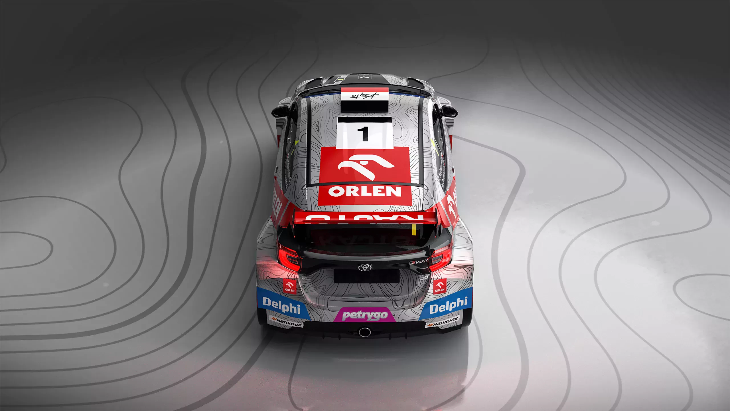 Główną zmianą w oklejeniu jest motyw tła pośród logotypów starych partnerów. Zamiast czarnego koloru, teraz zdecydowano się na srebrny z liniami imitującymi topografię terenu. Poza tym większość logotypów Orlenu i Deplhi pozostała w tym samym miejscu. Zmianę widać jednak na masce, gdzie wyeksponowano serię olejową Orlenu, Max Expert. Natomiast nad wydechem umieszczono logotyp Petrygo, czyli płynu chłodniczego naszego krajowego giganta petrochemicznego.