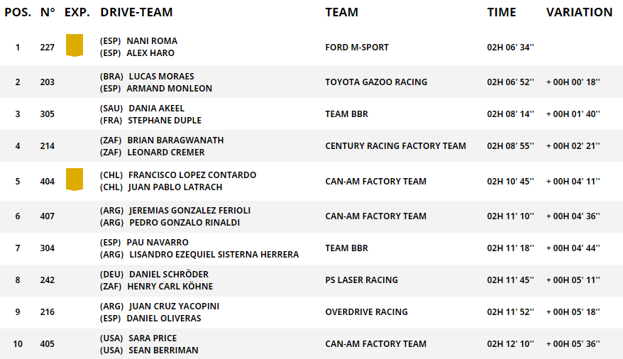 Ostatecznie na mecie Al-Attiyah stracił do zwycięzców – Naniego Romy i Alexa Haro – ponad 21 minut. Również Yazeed Al Rajhi i Mattias Ekstrom zaliczyli stratę przekraczającą 18 minut. Podczas wczorajszego etapu problemy mieli Henk Lategan i Brett Cummings. Oni stracili wówczas swoje prowadzenie w rajdzie, ale to nie była dla nich bardzo zła informacja. Dzisiaj bowiem wystartowali jako 11. załoga. To oznaczało, że mieli już przed sobą sporo śladów i mogli odrabiać straty. I tutaj przechodzimy do kluczowej kwestii. Lategan stracił dziś do zwycięzców etapu nieco ponad 9 minut. Co nam to mówi?
