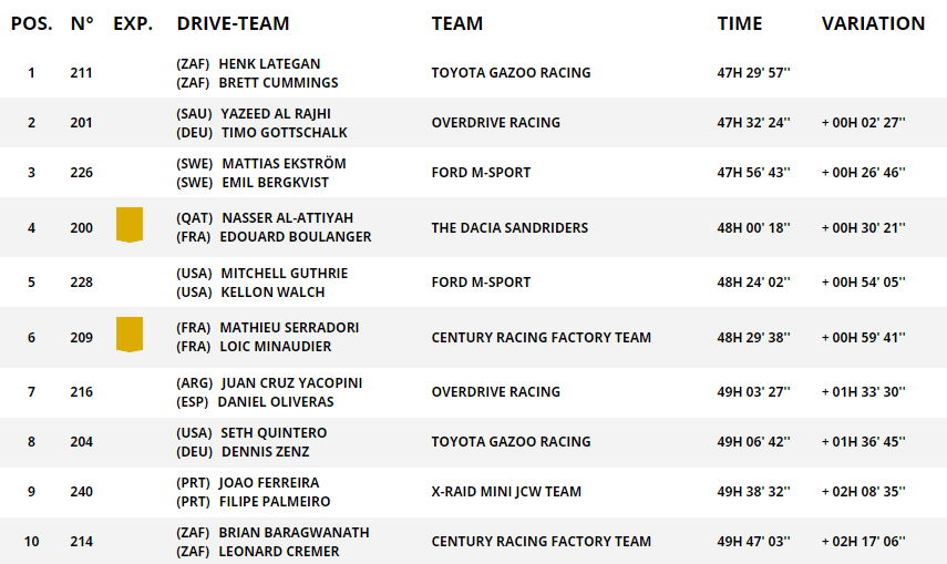 Rajd Dakar Wyniki – Po 10. Etapie