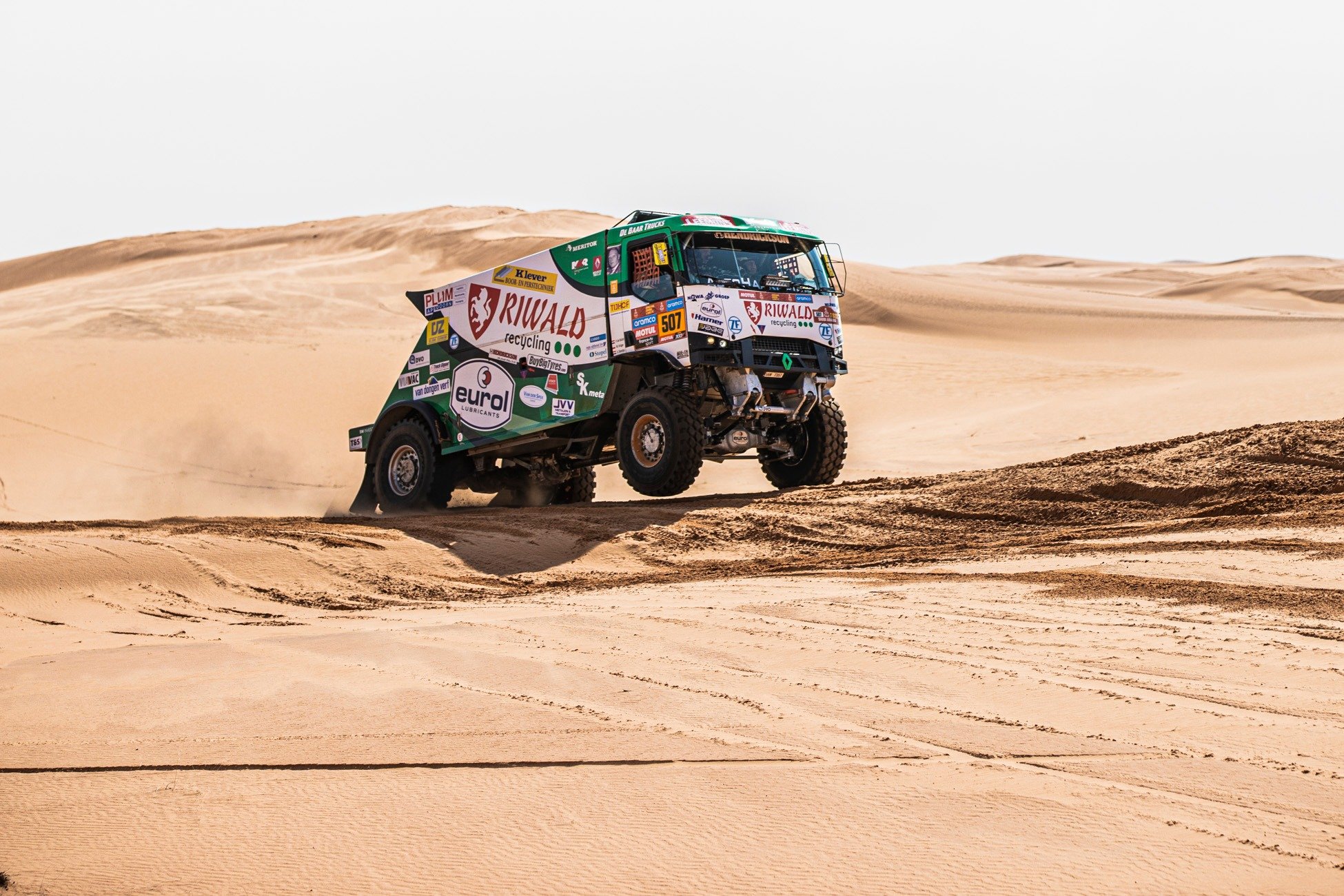 Z walką na wydmach najlepiej poradził sobie Pascal de Baar, który w swoim Renault C460 wiezie Marcina Krugera i Stefana Slootjesa. Holendersko-polska załoga była o 22 sekundy lepszy od ekipy Mitchela van den Brinka. Etapowe podium uzupełnił drugi z Polaków: Darek Rodewald, który z Janusem van Kasterenem i Marcelem Snijdersem stracili do triumfatorów minutę i dwanaście sekund. Bartłomiej Boba jadący z Tomasem Vratnym stracił dziś blisko godzinę.