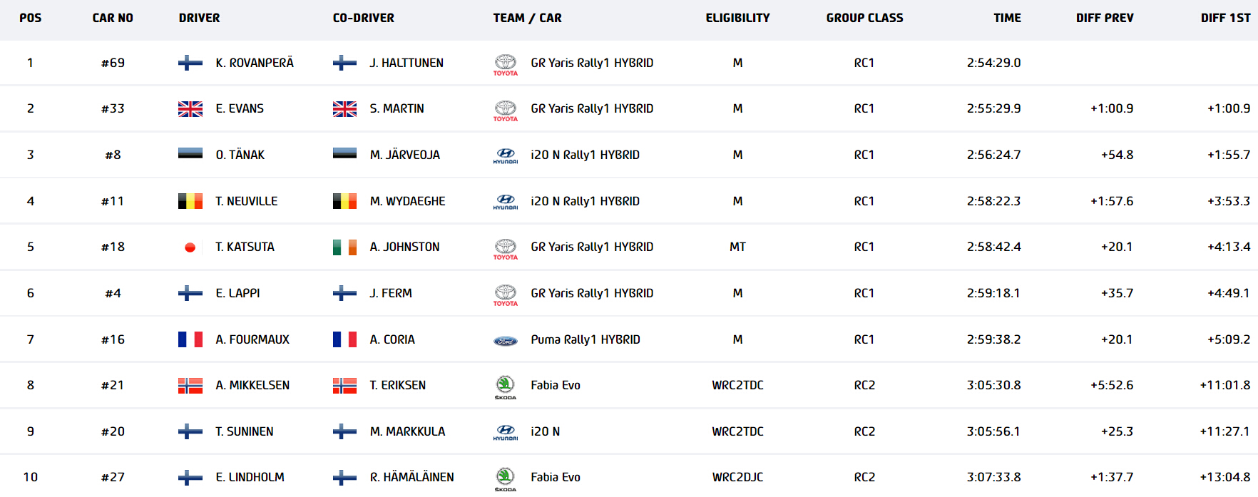 Dla Rovanpery triumf w Estonii jest siódmym zwycięstwem w karierze. W klasyfikacji wszech czasów zrównał się z Gillesem Panizzim, Sandro Munarim i Bernardem Darnichem. Smak szampana na podium Fin poznał dziesiąty raz w karierze. Dla Elfyna Evansa drugie miejsce jest 22 wizytą w czołowej trójce rundy mistrzostw świata.