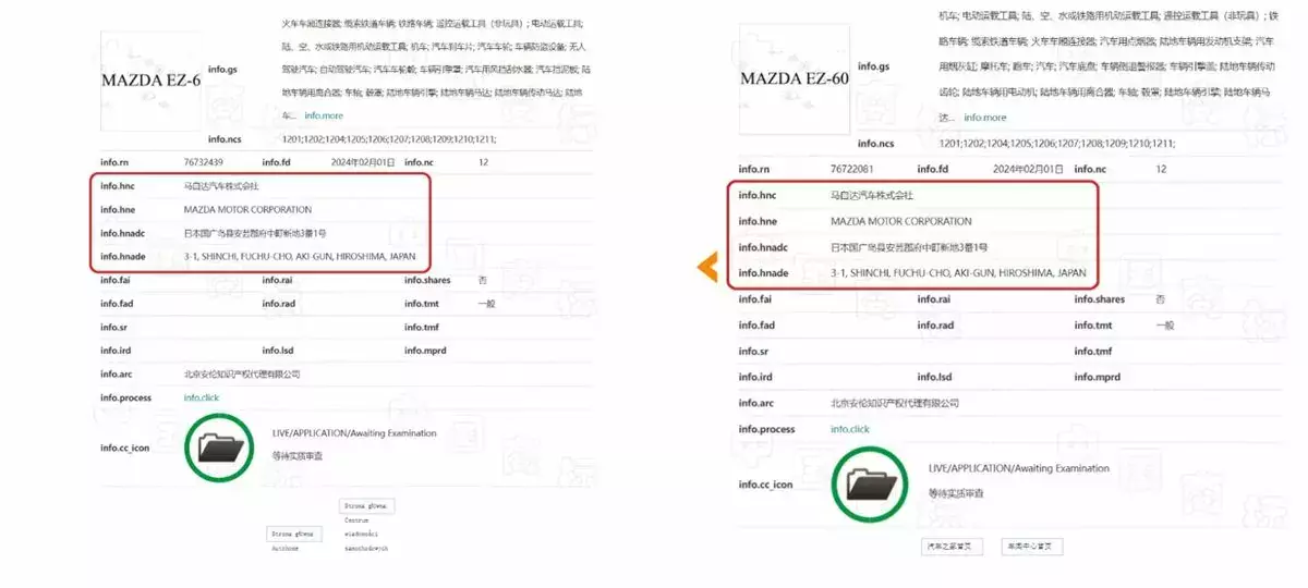 China Trademark Network, odkryło, że Mazda złożyła wniosek o rejestrację dwóch nowych znaków towarowych w Chinach: „MAZDA EZ-6” i „MAZDA EZ-60”.