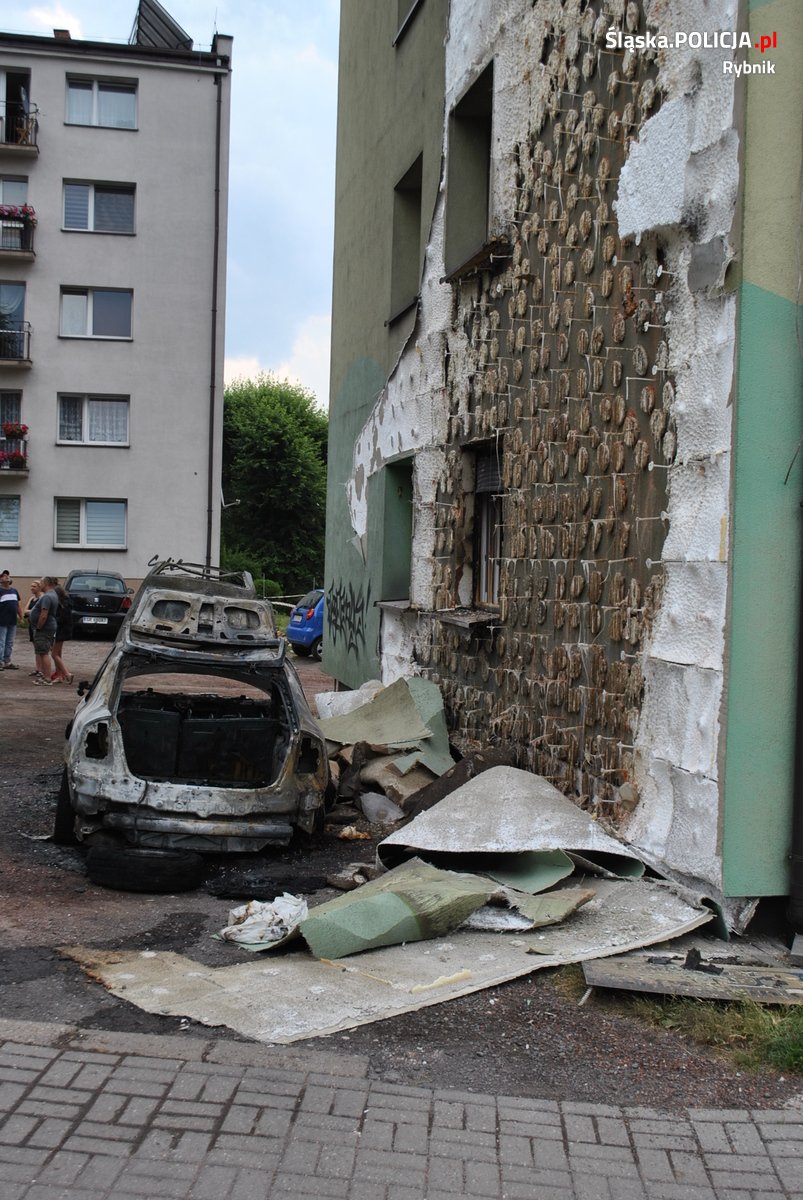 Do zdarzenia doszło we wtorek o 6.00. Mundurowi z ogniwa patrolowo-interwencynego rybnickiej komendy zostali zaalarmowani, że w rejonie bloku wielorodzinnego przy ulicy Morcinka mężczyzna oblał benzyną i podpalił taksówkę. Kiedy policjanci przyjechali na miejsce zastali płonący samochód oraz elewację budynku, obok którego stał samochód. Mężczyźni, którzy podróżowali taksówką, uciekli. Stróże prawa rozpoczęli poszukiwania sprawców.