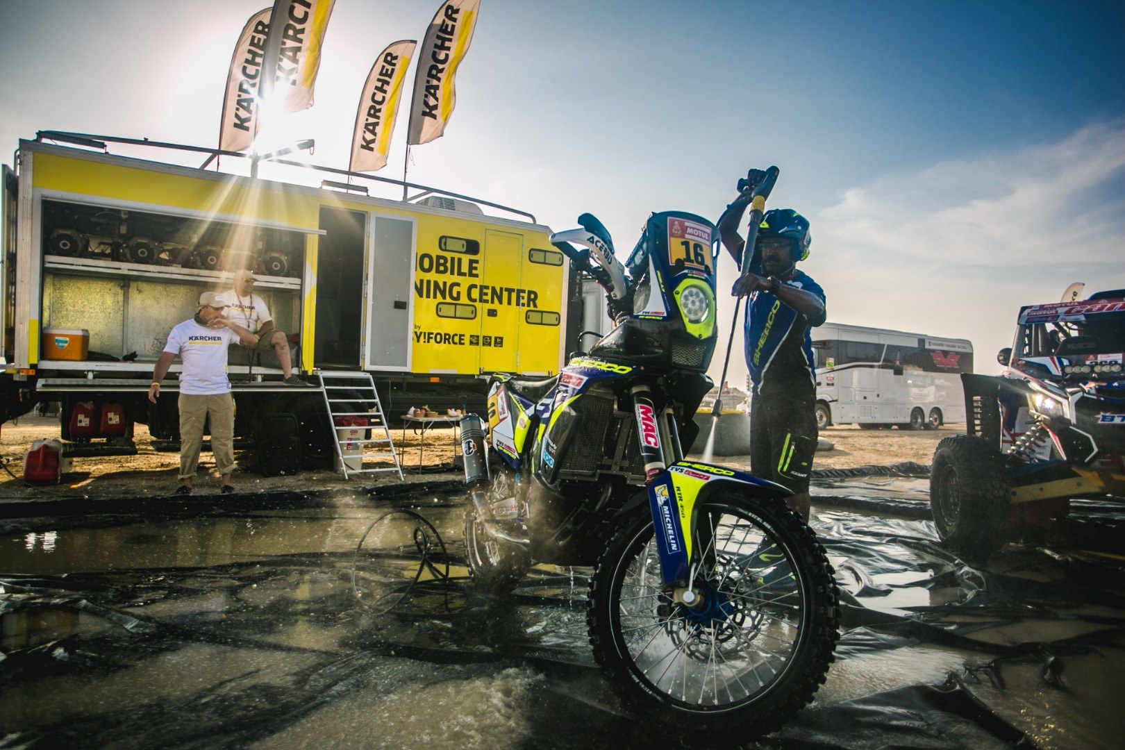 Urządzenia wysokociśnieniowe Karcher są zaprojektowane tak, aby sprostać wszelkim wymaganiom i pracować efektywnie w różnych obszarach. I tak podczas Dakaru służą do czyszczenia wszystkich pojazdów przemierzających trasę rajdu i przygotowania ich do dalszych prac serwisowych. Kierowcy bardzo cenią to wsparcie, gdyż dzięki temu mogą pozyskać wiedzę na temat stanu technicznego swojego pojazdu, a ich ekipa może sprawnie naprawić auto czy motocykl i przygotować go do dalszych zmagań.