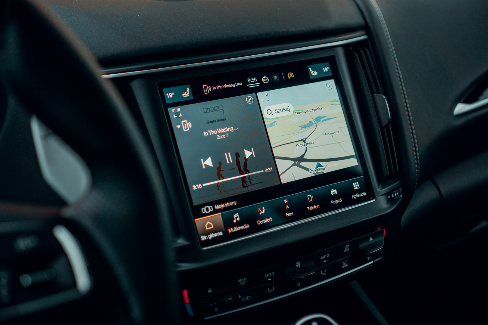 W środku na pewno nie jest jak na pokładzie USS Enterprise, co moim zdaniem jest dużą zaletą. Wszystko jest porządne, mięsiste i solidne. Zarówno jakość wykorzystanych materiałów, jak i spasowanie stoi na bardzo wysokim poziomie. Skóra jest gruba i aksamitna w dotyku, a plastiki (nawet te w najniżej położonych zakamarkach) kokpitu mają przyjemną w dotyku fakturę. Rozsiadając się w kokpicie Levante można poczuć się wyjątkowo.