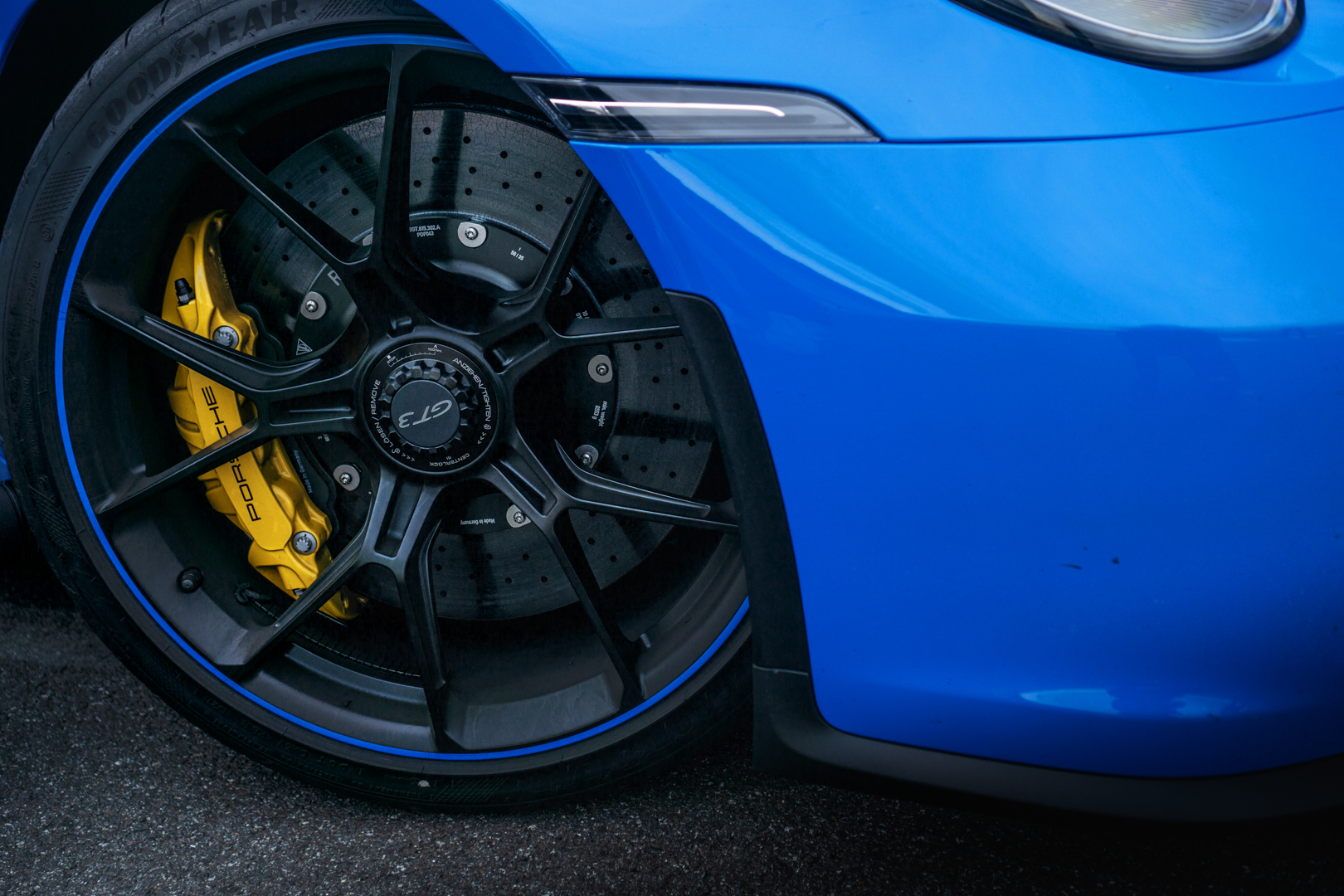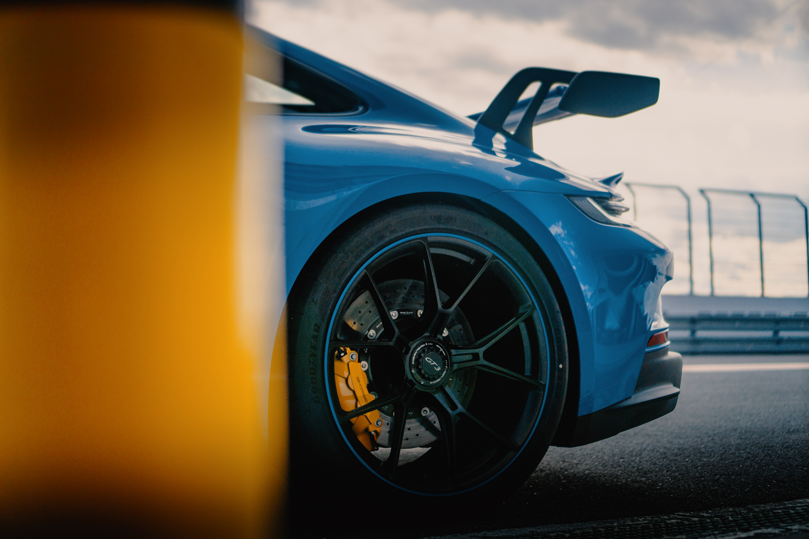 Teraz nasza kolej, ta część zabawy, na którą czekał każdy, kto się tu dzisiaj pojawił. Zaraz wsiądziemy do najnowszego Porsche 911 GT3. Do podziału mieliśmy dwa samochody, które różniły się między sobą jedynie rodzajem zastosowanych hamulców i kolorem. Czas na krótki wstęp, o co tyle szumu? Dobrze wiadomo, że model GT3 to samochód, który mimo, że jest samochodem drogowym, jedną nogą stoi pewnie po stronie motorsportu. Swoim wyglądem nie pozostawia żadnych złudzeń, to maszyna, która czerpie z wyścigów pełnymi garściami.