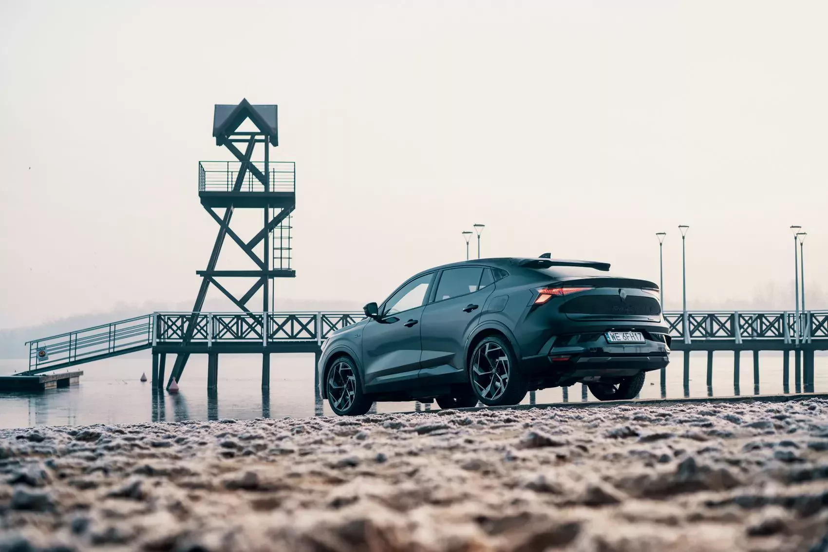 Renault Rafale Atelier Alpine w czarnym kolorze prezentuje się niezwykle efektownie. Charakterystyczna linia nadwozia typu SUV coupé nadaje mu dynamicznego wyglądu. Podkreślają go agresywnie zarysowane reflektory LED oraz masywny grill z logo Renault. Dodatki stylistyczne sygnowane przez Alpine, takie jak unikalne emblematy czy dedykowane 21-calowe felgi aluminiowe, dodają pojazdowi sportowego charakteru. Matowe wykończenie nadwozia podkreśla jego elegancję i nowoczesność.