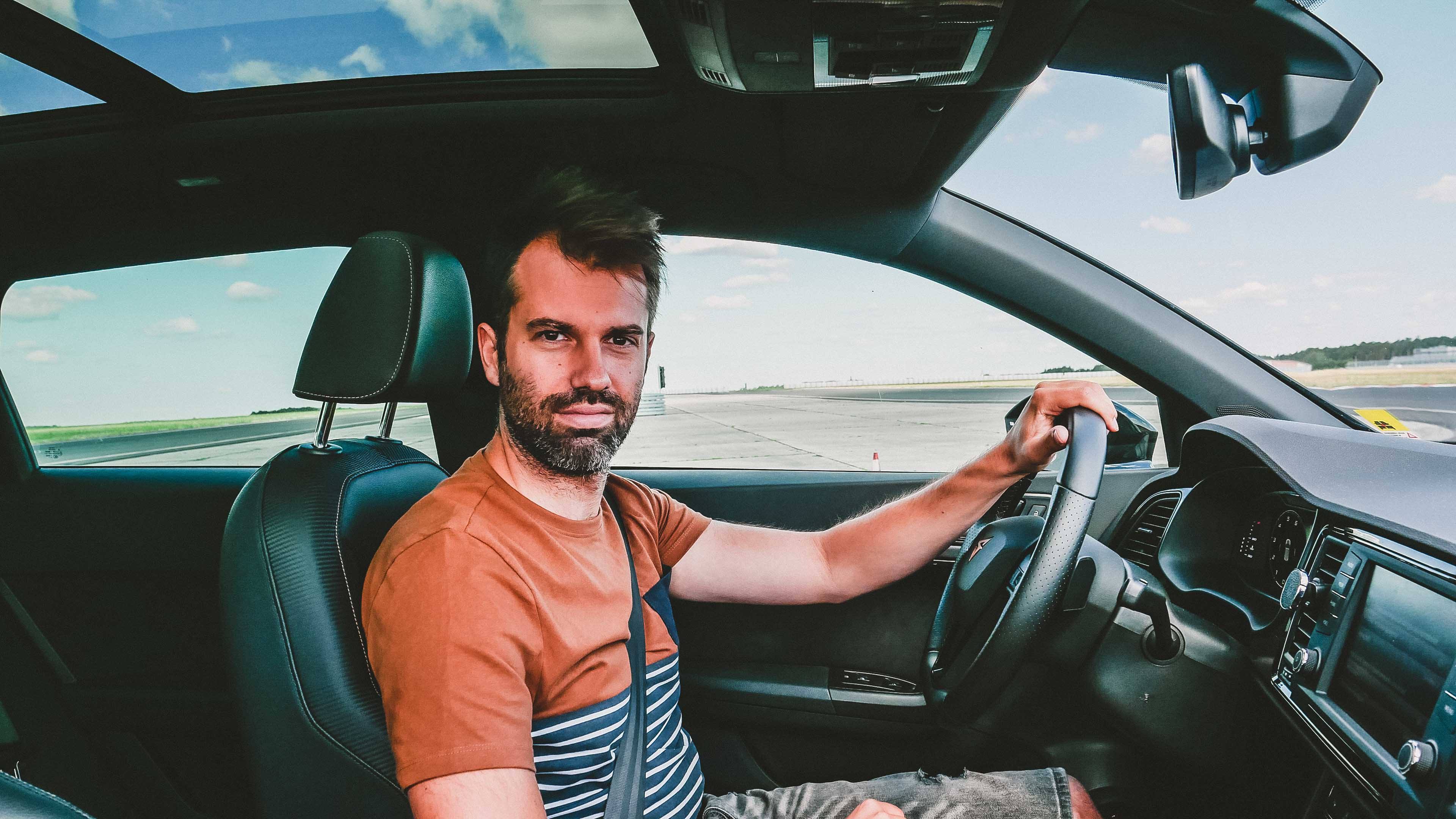 Przekazujemy kluczyki do pasującej do otoczenia toru wyścigowego Cupry Kubie i oglądamy, jak ten pokonuje kolejne okrążenia. – Pierwsze odczucia są bardzo pozytywne. Samochód jest przewidywalny i stabilny, trudno wytrącić go z równowagi – odpowiada na nasze prośby „pójścia bokiem”. – Samochód generuje z 2-litrowego benzyniaka 300 koni mechanicznych, więc mam naprawdę duży potencjał do sprawnego i szybkiego przemieszczania się.