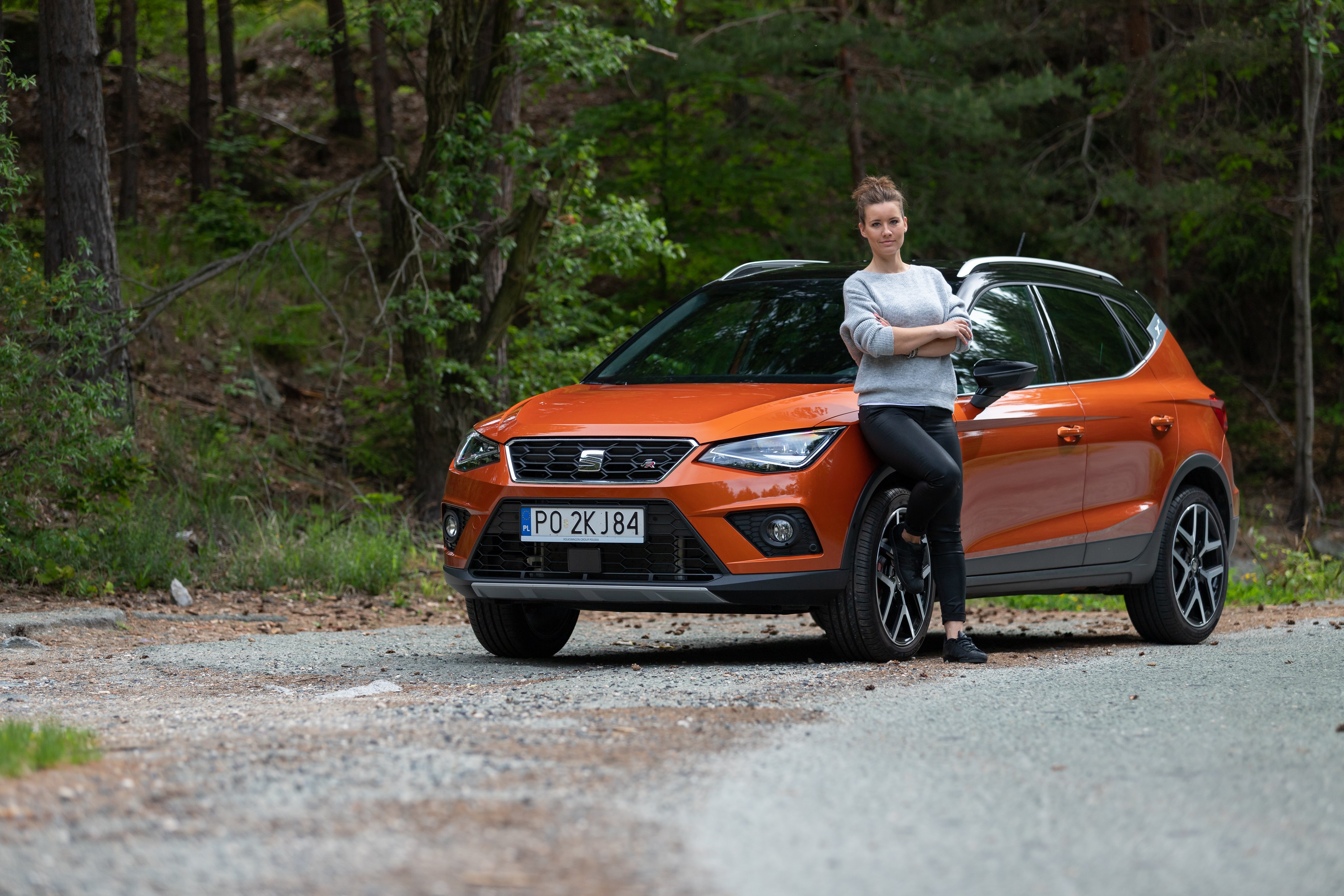 Chwilę później Magda siedzi już za kierownicą SEAT-a i wyrusza w trasę do Sobótki, gdzie w latach 90. zlokalizowane były odcinki specjalne Rajdu Polski. – Na co dzień jeżdżę Audi A3, ale już czuję, że mogłabym zostawić sobie Aronę – śmieje się Magda, chcąc ewidentnie odesłać mnie na pociąg powrotny do Katowic. – Z tego, co wyczytałam, mamy tutaj pełną dowolność w konfiguracji kolorystyki zarówno samochodu, jak i dachu, ciekawy pakiet stylistyczny FR i dość mocny, jak na tak małych gabarytów samochód, silnik – Magda zaskakuje mnie swoją wiedzą, bowiem o tym, czym będziemy jeździć, dowiedziała się w wieczór poprzedzający nasze spotkanie.