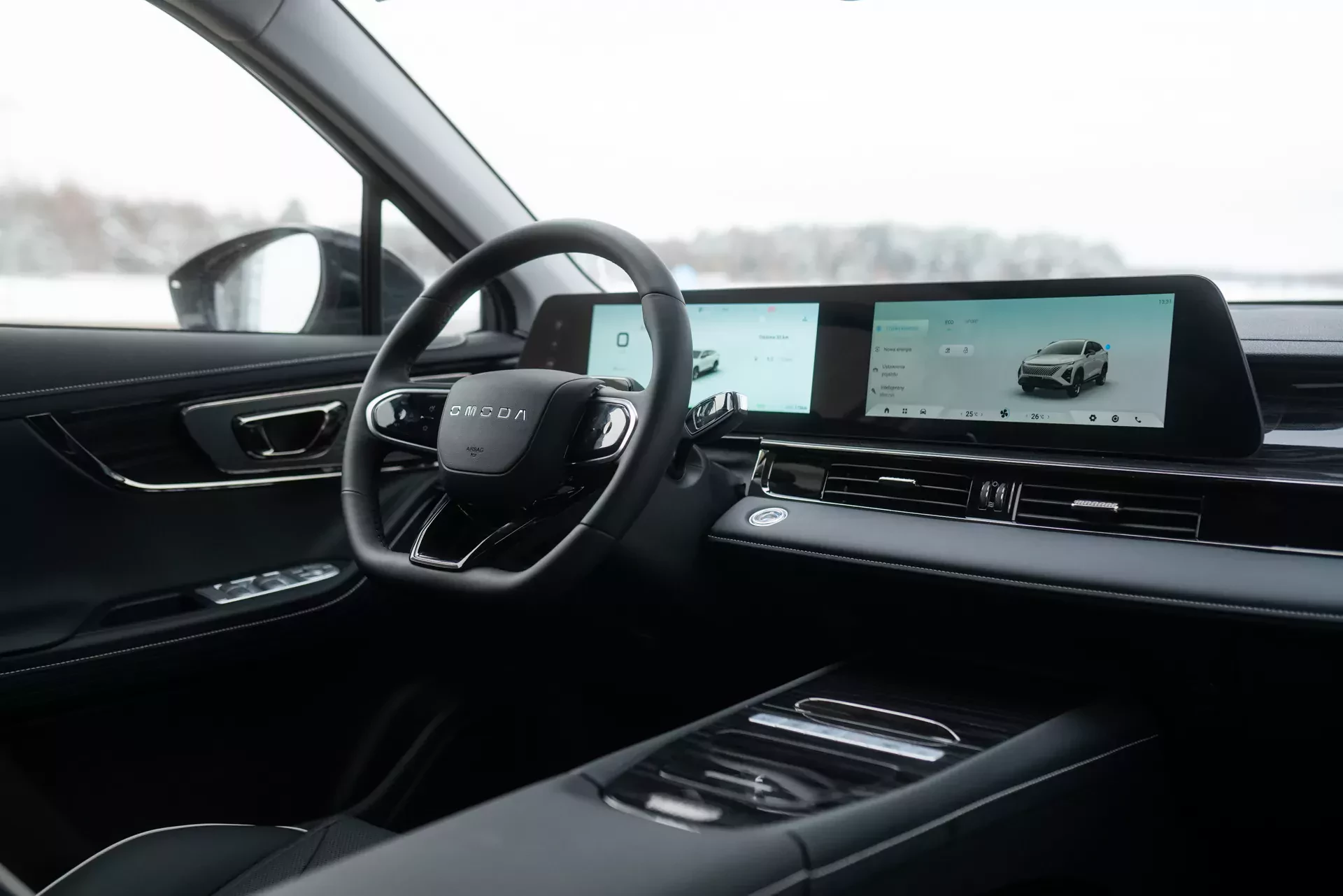 Dzięki stosunkowo dużej mocy i względnie normalnej masie to w Omodzie 5 Hybrid czułem największą pewność za kierownicą w kryzysowych sytuacjach. Te miałem symulowane na Autodromie Jastrząb, który w zimowej aurze przywitał wymagającymi warunkami. Jednak to jak sprawnie systemy asystujące wyprowadzały auto, mogło zrobić wrażenie. Zwłaszcza że Omoda 5 Hybrid ma aż 20 (!) systemów ADAS.